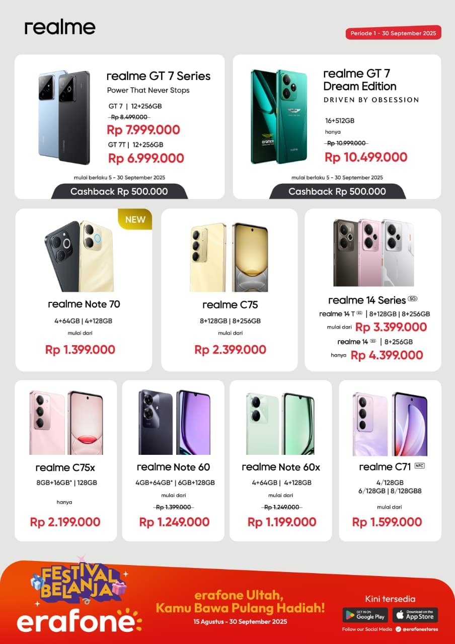 Butuh smartphone Realme terbaru dengan cicilan mudah dan promo menarik? Kunjungi Realme erafone Moch Kahfi Jl. Moh. Kahfi 1 No.1, RT.15/RW.1, Cipedak, Kec. Jagakarsa, Kota Jakarta Selatan, Daerah Khusus Ibukota Jakarta 12630 pusat toko handphone Realme di jakarta selatan Kami menyediakan home delivery service, tuker tambah Realme di Kota Jakarta Selatan, cicilan 0% dengan kartu kredit, serta cicilan tanpa kartu kredit melalui Kredivo, Home Credit, Indodana, Akulaku, Shopee PayLater, dan lainnya. Stok lengkap, garansi resmi, dan pelayanan terbaik! Cari toko Realme terdekat dari lokasi Anda? Datang ke Realme Erafone Moch Kahfi